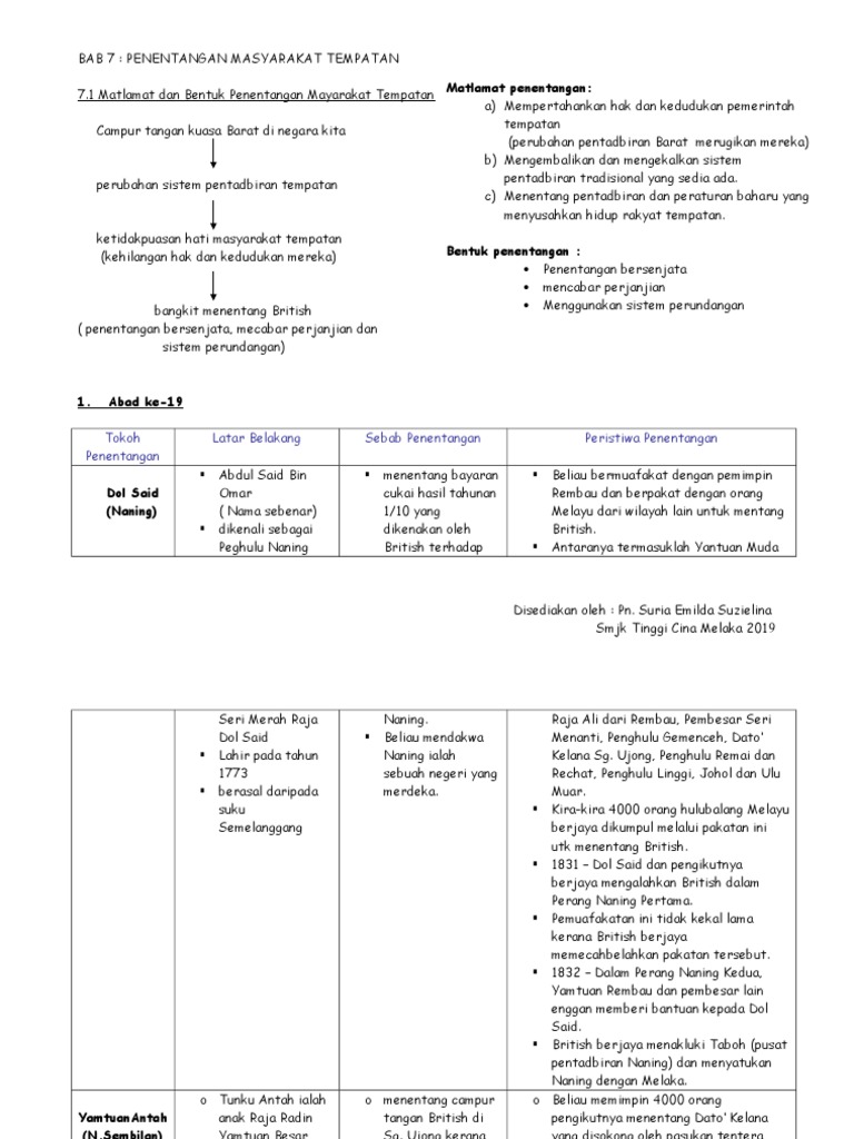 Sejarah tingkatan 3 bab 7 penentangan masyarakat tempatan.
