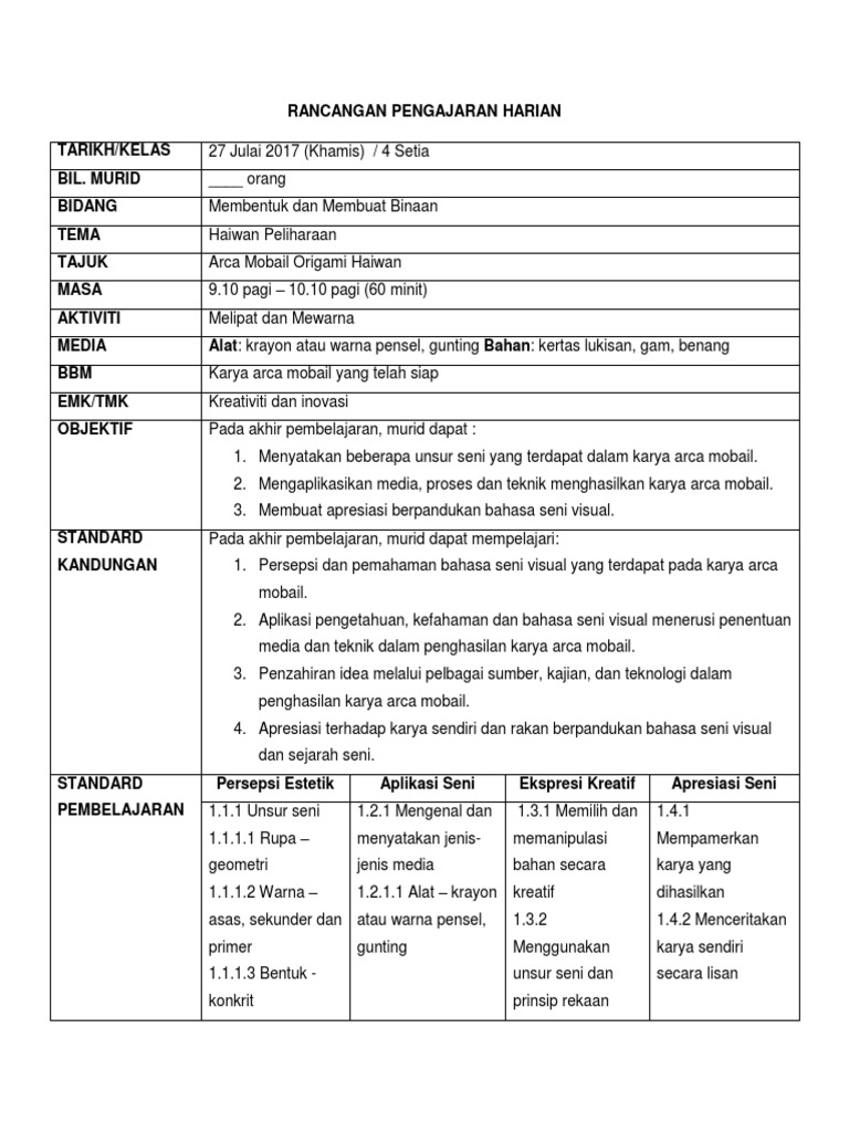 Namun, dah memadai untuk digunakan di awal persekolahan. Berikut merupakan koleksi rph pendidikan seni. Resis membuat corak dan rekaan 4. Rph ini sesuai untuk dijadikan paduan. Untuk dapat melaksanakannya, mahasiswa sebagai guru kelas diharuskan mempelajari materi.